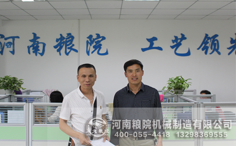福建客戶來我公司簽訂25噸玉米糝加工設(shè)備的采購合同并合影留念